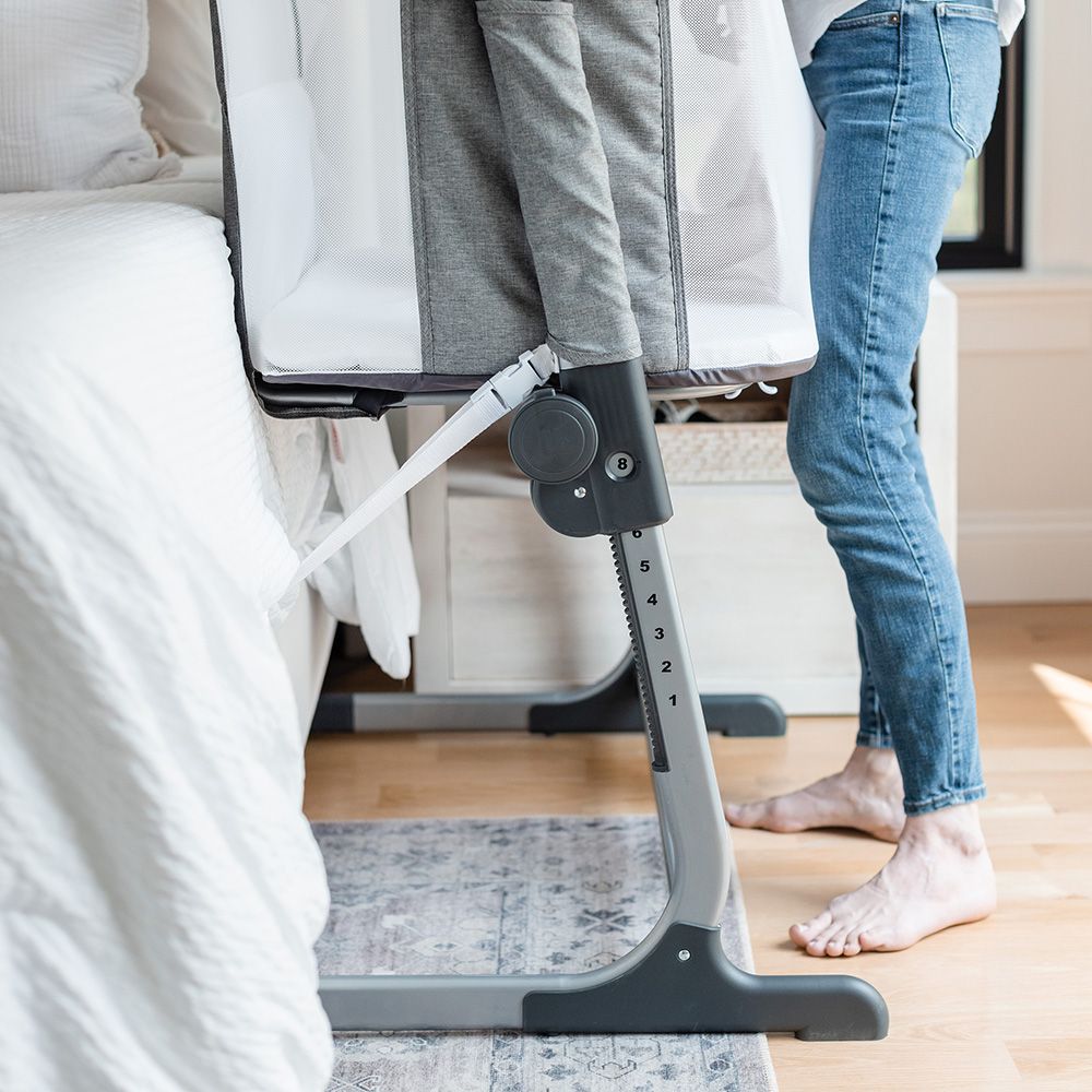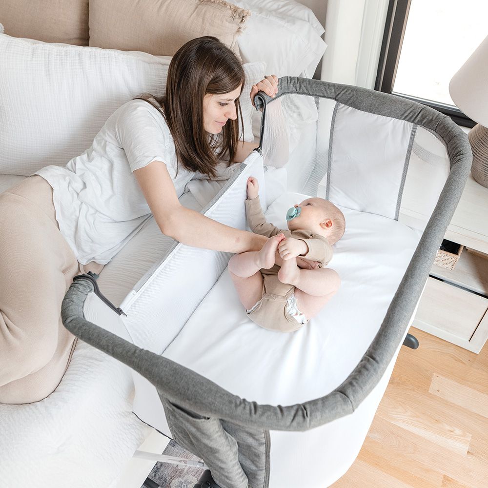 - Zip-down side panel for easy access to baby in bedside sleeper mode
