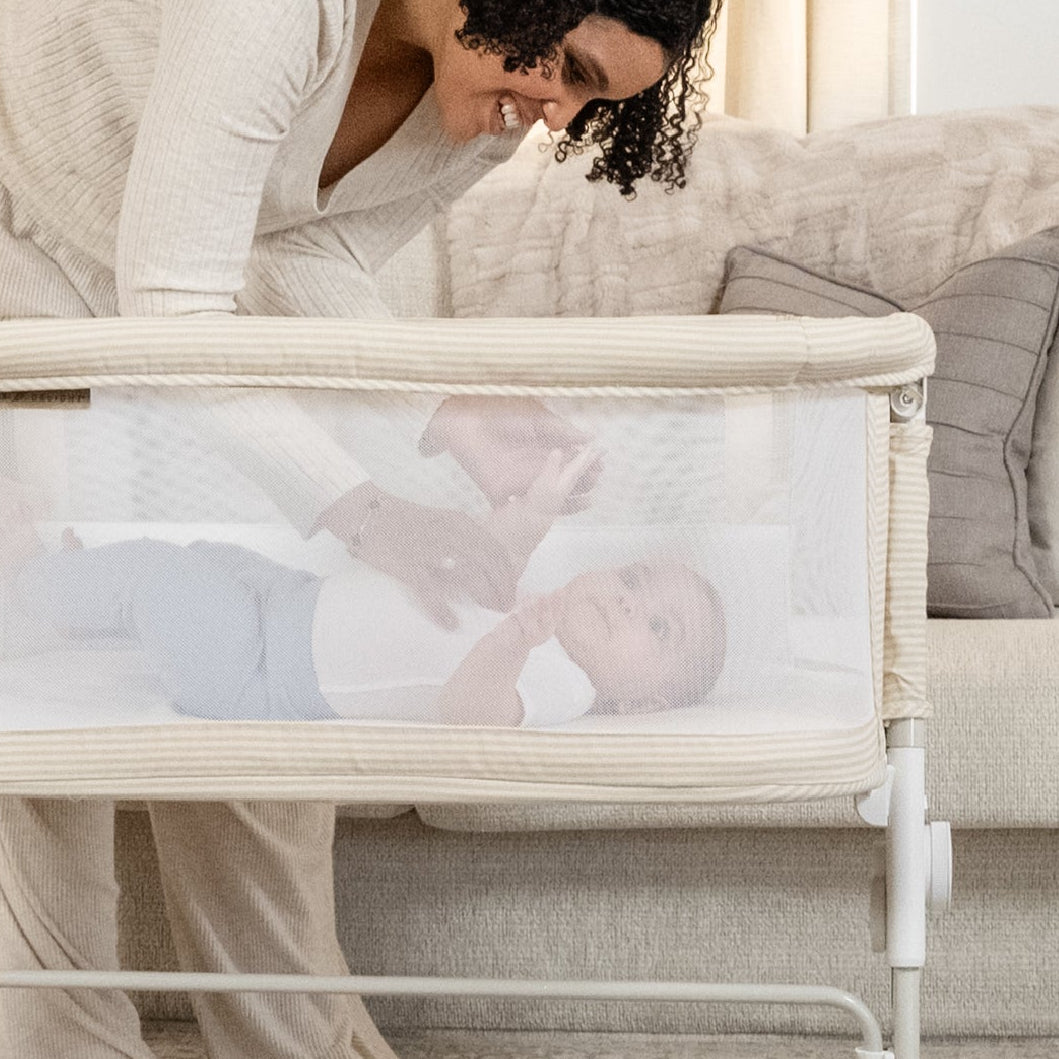 Beside Me™ Dreamer Bassinet & Bedside Sleeper - Tan Linen Stripe