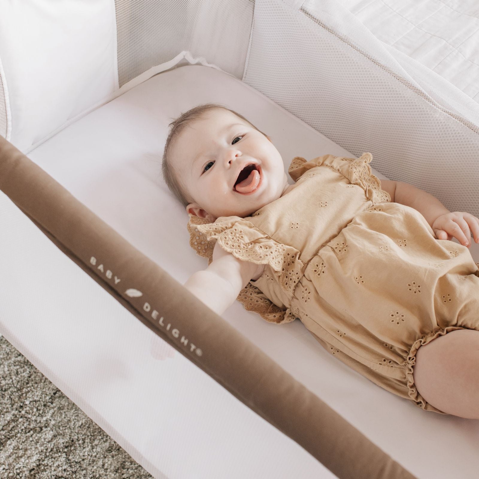 - Zip-down side panel for easy access to baby in bedside sleeper mode