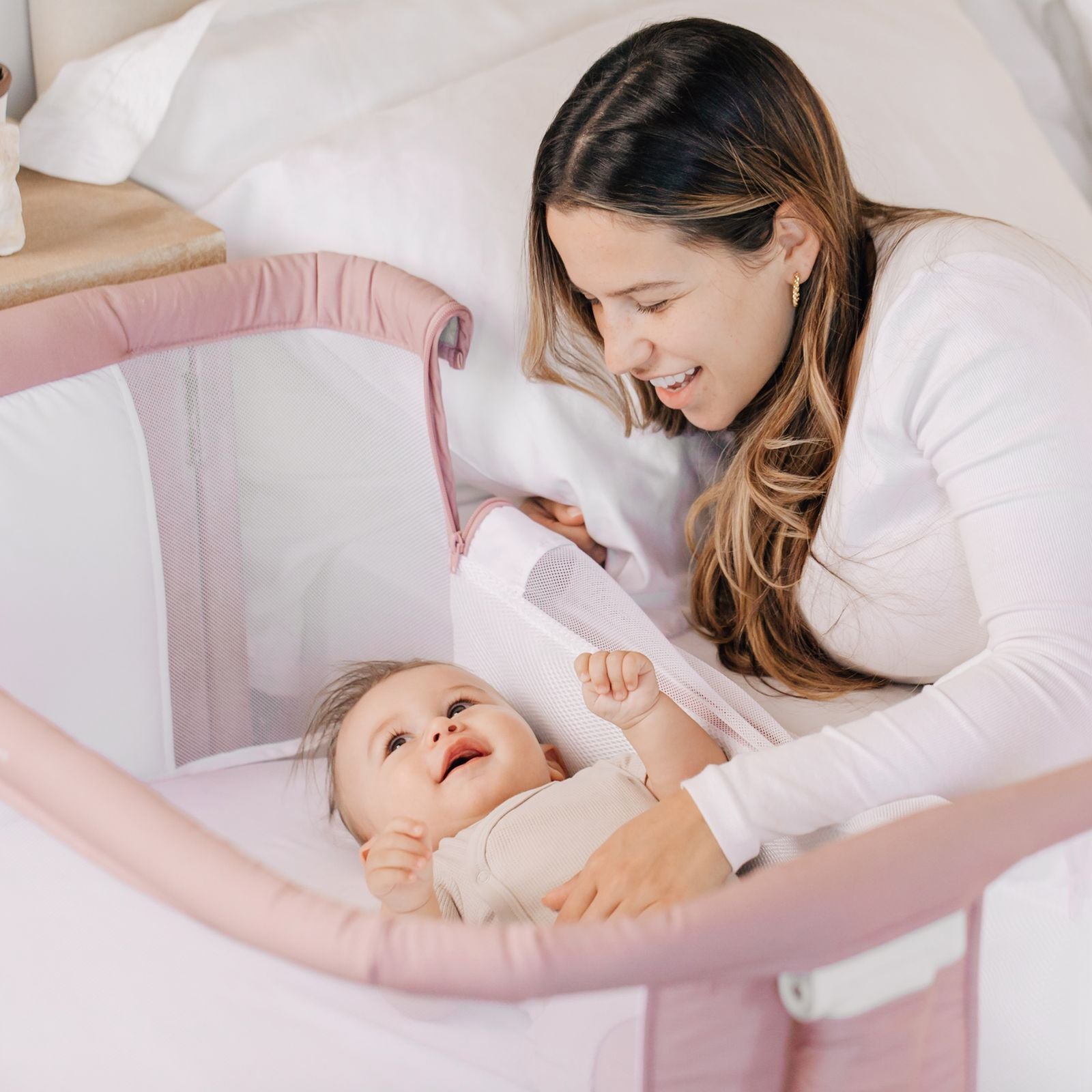 - Zip-down side panel for easy access to baby in bedside sleeper mode