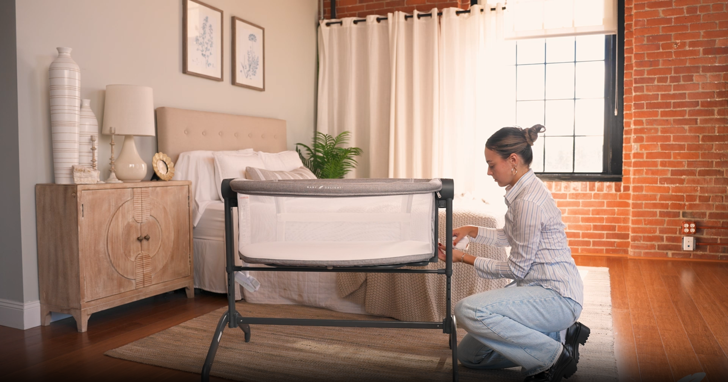 - Fold-down wall easily converts the bassinet into a bedside sleeper