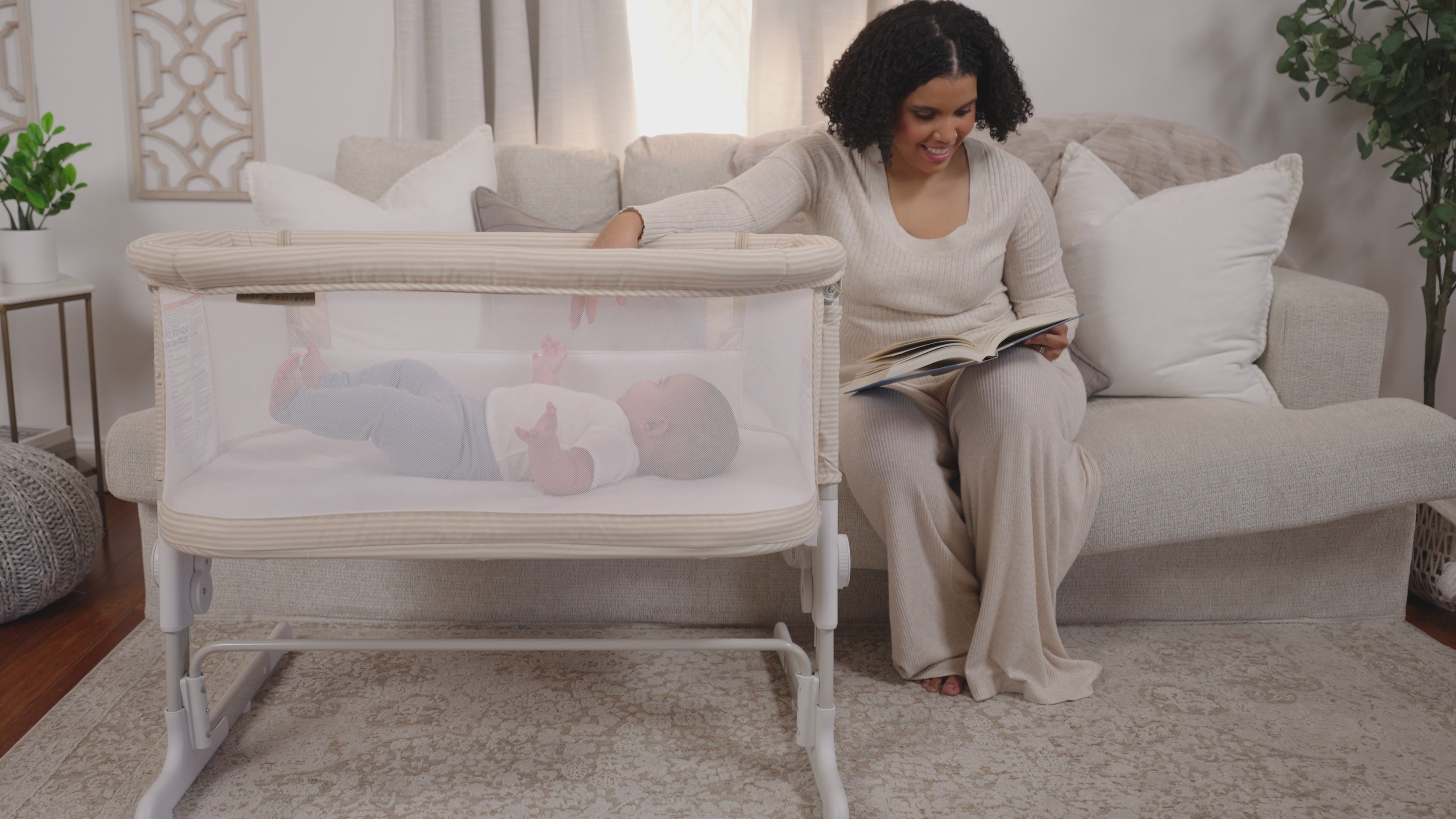 - Zip-down side panel for easy access to baby in bedside sleeper mode