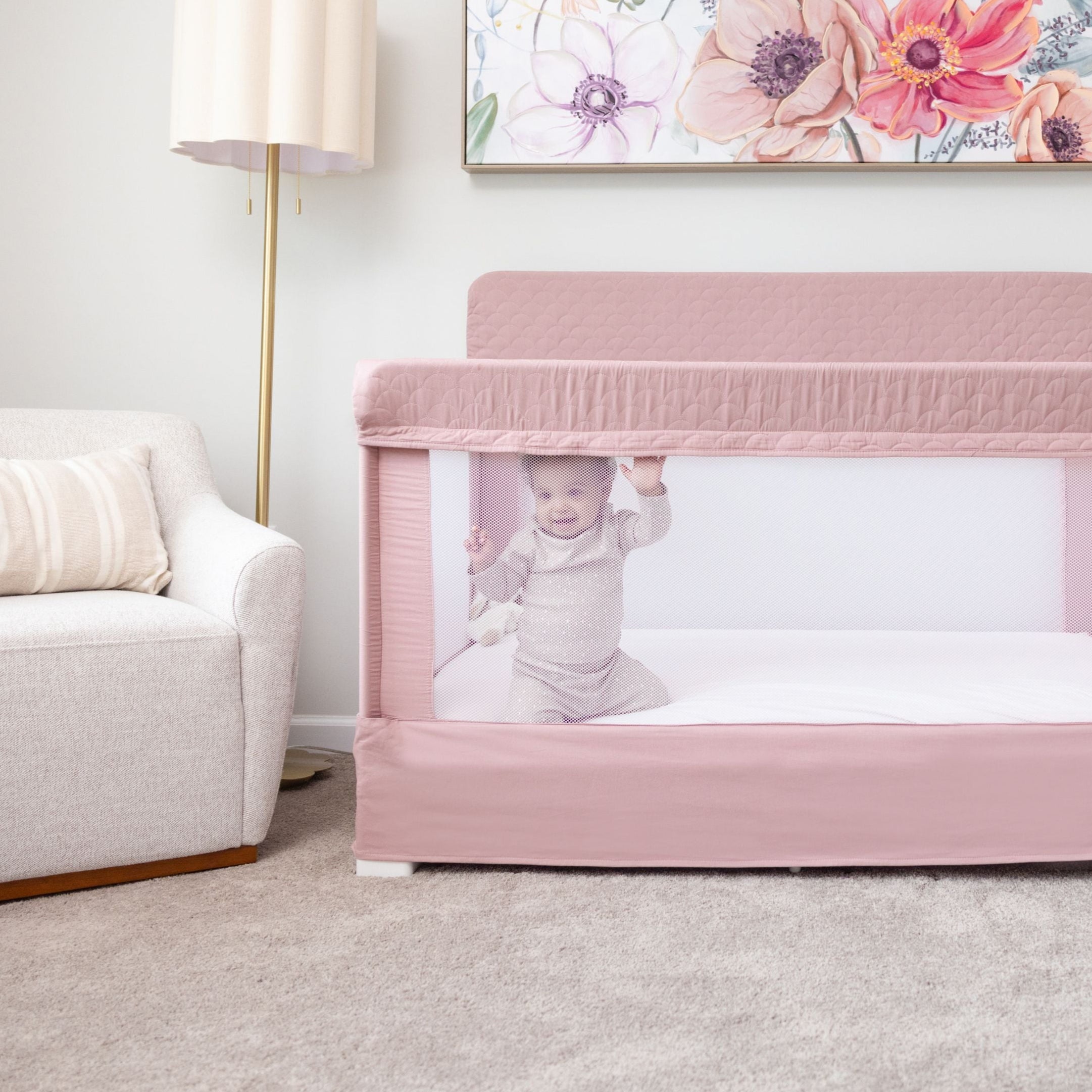 Lunaire Full Size Mesh Crib and Playard - Organic Rose